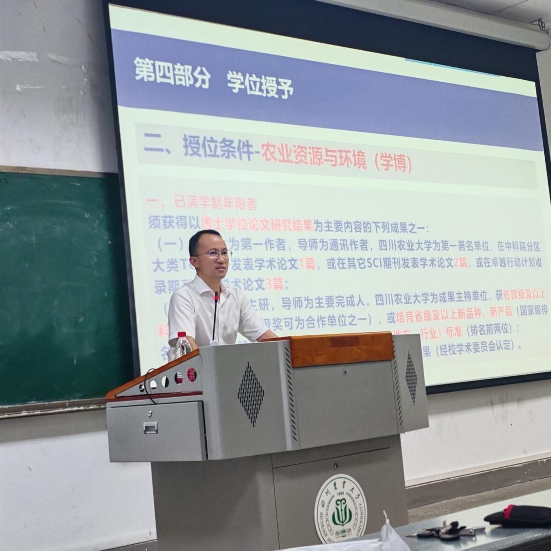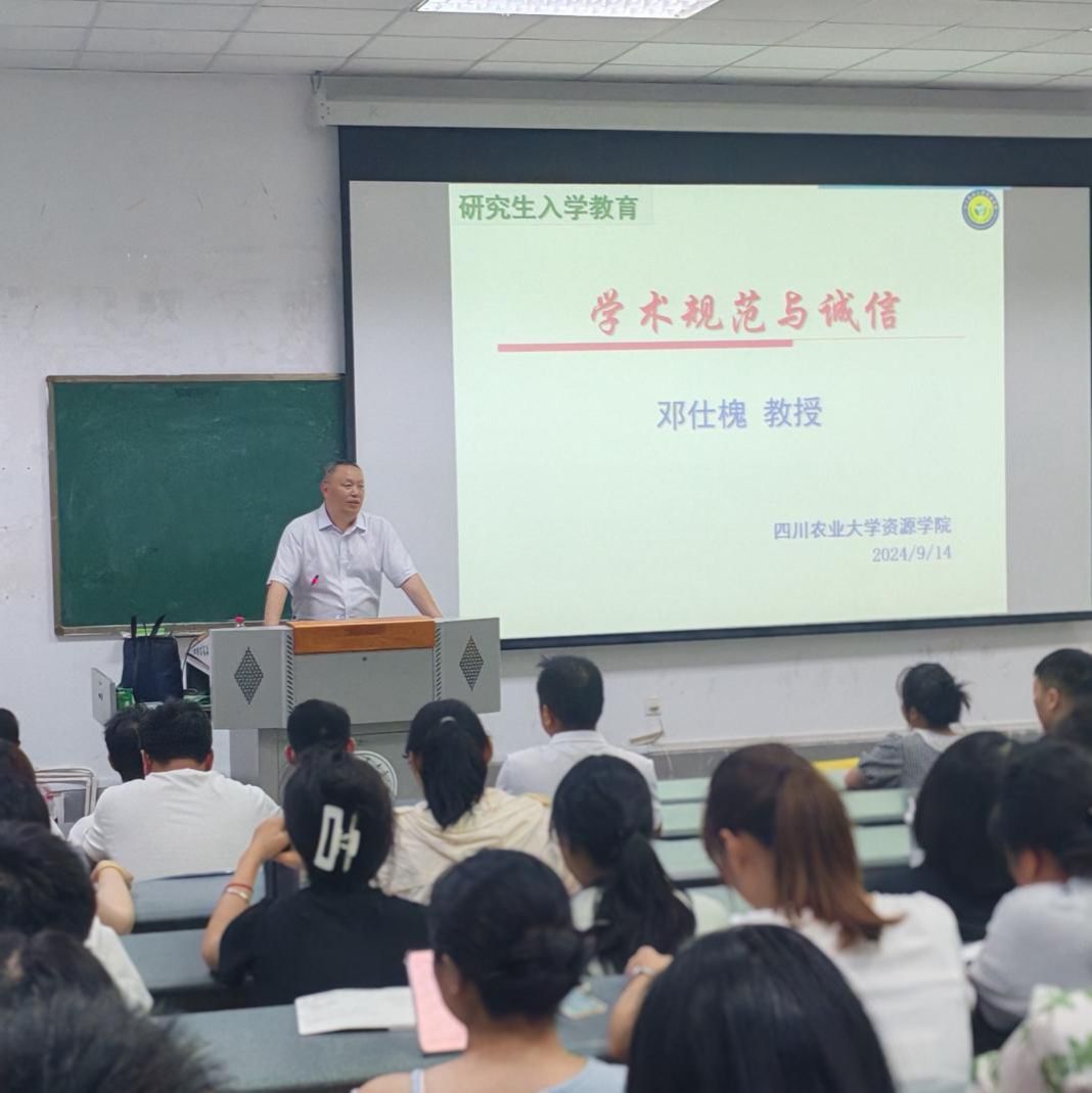 导航痕迹 四川农业大学 资源学院 学院首页 学院新闻 正文 学院新闻 通知公告 科研动态 就业服务 学生工作 聚焦资源 师生风采 资源学院隆重举行2025级研究生新生大会暨入学教育活动 2025年09月16日 2025年9月14日上午,资源学院2025级研究生新生大会暨入学教育活动在成都校区第四教学楼A105阶梯教室顺利举行。学院领导、中国农业科学院都市农业研究所、四川省农业科学院农业资源与环境研究所、四川省食用菌研究所等联合培养单位的领导与导师、各系室负责人、导师代表以及全体2025级研究生新生共同参会。会议由学院副院长陈光登教授主持。 院长邓仕槐教授致辞。他代表学院向全体新生表示诚挚的祝贺和热烈的欢迎,并简要介绍了学院的发展历程、学科优势与人才培养成果。邓院长鼓励同学们珍惜研究生阶段的学习机会,树立远大志向,积极参与科研实践,努力成长为具有创新精神和实践能力的高层次人才。 副院长余海英教授就学院与学科的发展历史、学术文化等方面作了专题介绍,帮助新生更全面地了解学院的学术传统、科研平台及未来发展方向,为同学们尽快融入学术环境奠定了良好基础。 副院长李冰教授作了实验室安全教育专题讲座,系统讲解了常见实验室安全隐患及防范措施,强调安全是科研工作的首要前提,切实增强了新生的安全意识和自我保护能力。 杨绍凤就研究生系统使用、日常管理及事务办理流程进行了讲解,帮助同学们熟悉在校期间的各项管理制度与服务流程,提高办事效率。 下午,副院长陈光登教授开展了研究生管理制度专题教育,对学籍管理、奖助体系、培养要求等政策进行解读,引导同学们明确学习目标,规范学术行为。 邓仕槐作了题为“科研道德、学术诚信与学术规范”的专题报告。他结合实例强调了恪守学术道德的重要性,呼吁同学们从入学伊始就树立严谨治学的态度,坚守学术底线,弘扬科学精神。 本次新生大会暨入学教育内容充实、安排紧凑,涵盖了思想引导、学术启蒙、制度解读、安全教育等多方面,为2025级研究生新生顺利开启学业生涯提供了有力保障。同学们纷纷表示,通过此次活动增强了对学院的归属感,明确了未来努力的方向,将以饱满的热情投入新的学习与科研生活中。 上一条:学院召开2025届毕业生就业工作总结会暨2026届毕业生就业工作推进会 下一条:学院顺利召开2025级本科新生大会暨安全纪律教育会 【关闭】
