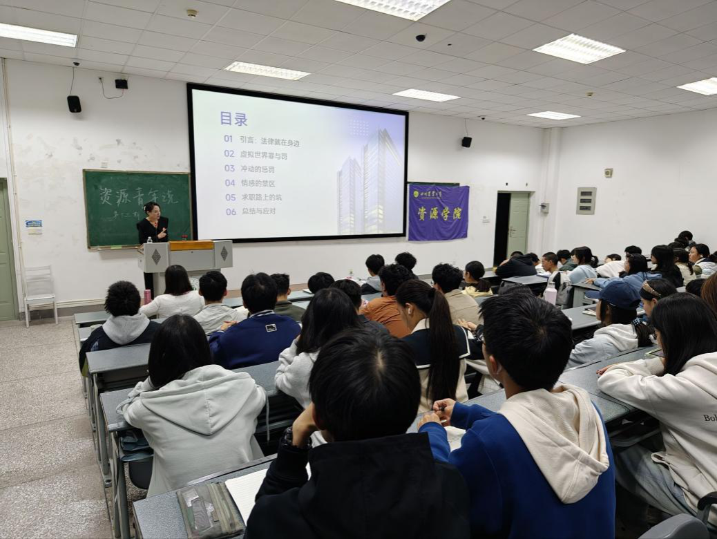 导航痕迹 四川农业大学 资源学院 学院首页 学院新闻 正文 学院新闻 通知公告 科研动态 就业服务 学生工作 聚焦资源 师生风采 将纪律挺在前面 把安全刻在心间 ——资源学院开展新生预防犯罪法制教育 2025年10月29日 作者:李雨珊 审核人:张宏霞 为进一步增强大学生的法律意识和法治观念,有效预防和减少大学生违法犯罪行为发生,强化大学生尊法学法守法用法的良好习惯,营造安全、和谐、文明的校园环境,资源学院于10月24日针对2025级全体新生开展大学生犯罪预防法制专题讲座。本次讲座邀请学校校友、四川致高律师事务所劳动和社会保障专业委员会副主任张琳律师作为主讲嘉宾。 张琳结合当前大学生常见的犯罪典型类型,如盗窃、诈骗、故意伤害、网络犯罪,性犯罪、毒品犯罪等,用通俗易懂的语言解读了《中华人民共和国刑法》中与大学生日常学习生活密切相关的法律条文,让同学们明确法律的边界和行为的底线。她结合多个真实大学生犯罪案例,深入剖析了案件发生的深层次原因,希望大学生强化法律意识,通过提升个人修养,避免和克服冲动行事、爱慕虚荣、轻信他人、沉迷网络等不良习惯与行为。张琳谈到,大学是人生中最富活力与可能性的阶段,但同时若缺乏法律的约束与指引,极易滑向违法的深渊,对个人前途、家庭幸福以及社会稳定造成严重危害。同学们深受触动。 据悉,本次讲座是继去年特邀刑警开展大学生法律意识讲座后的第二次法制教育讲座,学院将进一步拓展法治教育渠道,丰富法治实践活动,让大学生牢固内心法律防线,做知法,守法,有担当的大学生。 上一条:学院第十期团校开班仪式暨学生骨干必备技能培训会 下一条:资源学院“企业直通车”开进上市企业“鱼鳞图” 【关闭】