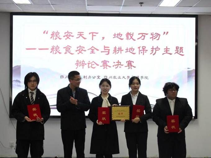 导航痕迹 四川农业大学 资源学院 学院首页 学院新闻 正文 学院新闻 通知公告 科研动态 就业服务 学生工作 聚焦资源 师生风采 辩农道论粮安 思智慧守本源 ——四川农业大学资源学院辩论赛圆满落幕 2025年12月22日 作者:周冰冰 审核:张宏霞12月18日,由省田长制办公室主办、四川农业大学资源学院承办的“粮安天下·地载万物”耕地保护和粮食安全主题辩论赛圆满收官。辩太辩论队(土地科学202501)荣获冠军、低调低调辩论队(地理202502)获得亚军、气死一队算一队(资环202505)获得季军。辩太辩论队的朱浩为、低调低调队的肖俊杰荣获“最佳辩手”。图一:辩论赛决赛现场自本次辩论赛启动以来,资源学院的众多队伍积极报名参赛。经过为期一个月的严格选拔,历经选拔赛、初赛、半决赛等多轮激烈角逐。最终,低调低调辩论队与辩太辩论队凭借着清晰的逻辑思维和默契的团队合作,成功晋级决赛。出席本次决赛的嘉宾有省自然资源厅耕地保护监督处副处长韩春,省教育厅基建后产中心主任刘士喜,以及省农业农村厅农田建设管理处一级调研员陈琦,同时,由校学生处副处长兼资助中心主任王丽萍,资源学院党委书记张宏霞,副院长陈光登教授,土壤学系副主任黄化刚副教授,土地资源科学系副主任魏雅丽副教授组成专业评审团。图二:辩论赛成员与嘉宾、观众及评审团首先,资源学院党委书记张宏霞为决赛致辞并预祝赛事取得圆满成功,接下来,辩论赛事依照开篇立论、驳立论、质辩、自由辩论、总结陈词这五大环节依次展开,正反双方就“在智慧农业的大背景下,粮食安全的保障关键在于把握核心算法与数据,还是在于维护传统种质资源与耕地”这一辩题,联袂奉献了一场唇枪舌剑的精彩对决。图三:辩论赛现场最后,省自然资源厅耕地保护监督处的韩春副处长为赛事总结,他指出,本次辩论赛中,辩手们既展现出扎实的专业知识素养,也传递出对我国资源地理国情和经济社会发展的深切关注。这种以辩促学、以辩促思的独特形式,让耕地保护相关政策法规更接地气、更具时代感染力,不仅为破解耕地保护工作中的难点堵点问题提供了鲜活的青年视角和创新思路,更充分彰显了校地协同守护耕地红线的强大合力,有效推动了耕地保护理念在青年群体中的广泛传播与深度认同。图四:省自然资源厅耕地保护监督处韩春副处长讲话图五:冠军队伍与韩春先生的合影图六:亚军队伍与刘士喜先生的合影图七:季军队伍与陈琦先生的合影图八:最佳辩手与王丽萍老师的合影图九:此次辩论赛合影赛后,现场观众纷纷表示,这场辩论赛不仅带来了一场精彩的思辨盛宴,更让大家对粮食安全的多维保障路径有了更深刻、更全面的理解。此次辩论赛的举办,有效激发了青年群体关注农业发展、心系粮食安全的责任感,为校园文化建设注入了新的活力。 上一条:【喜报】学院博士研究生安龙龙入选“2025年中国科协青年科技人才培育工程博士生专项计划” 下一条:从沃土描摹到驻足星河:一场关于土地的立体认知之旅 【关闭】